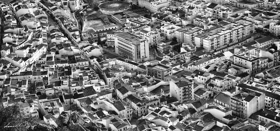 Plano cenital de Ubrique, trasero a la cruz del tajo. David Bulpe
